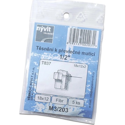 Těsnění převlečných matic fíbrové 1/2", 12 x 18 x 2 mm, M3/203 (5 ks). rozměry: 12 x 18 x 2 mm balení: 5 ks Fíbrové těsnění k převlečné matici.