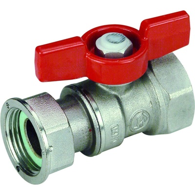Kulový kohout s vnitřním závitem a převlečnou maticí s otvory pro plombu (pro vodoměry) a ovládací vrtulkou - červená, chromovaný. Závity ISO 228 max. tlak 42 bar (1/2" -...