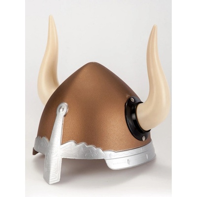 Vikingská přilba s ochranou nosu Vikingská přilba z bronzově zbarveného plastu se stříbrným povrchem, vybavená dlouhými rohy v barvě slonoviny a ochranou nosu. Doplněk pro...