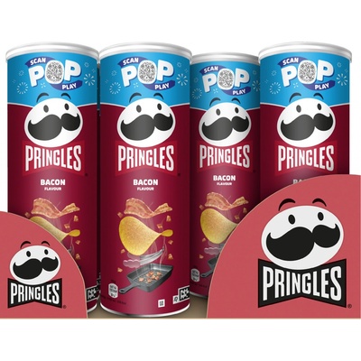 Světoznámé Pringles se slaninovou příchutí a v balení po 165g. Jedinečnost těchto chipsů spočívá v jejich nemastnosti a nezaměnitelné chuti.