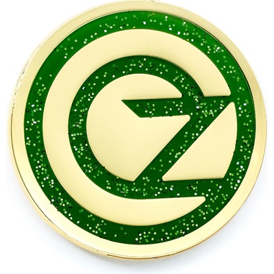 Smaragdově zelený odznak s logem země Oz, zelenou třpytivou výplní a dramatickým černým písmem. Připněte si ho na oblečení nebo doplňky. Vhodný od 14 let.