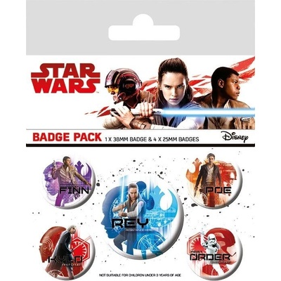 Odznáčky Star Wars 5 ks. Oficiálně licencovaný produkt. Sada 5 odznáčků. Rozměr: 4x 2,5 cm, 1x 3,8 cm