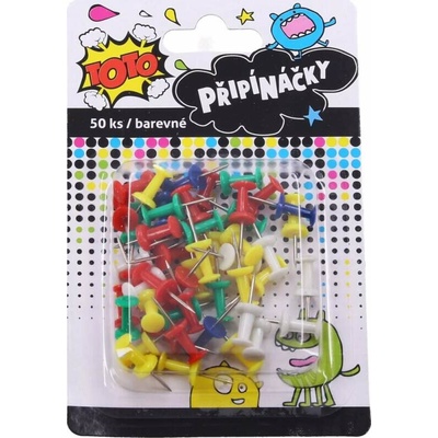 Barevné připináčky s plastovou hlavičkou jsou určeny pro korkové tabule. Délka kovové části: 11 mm. Celková velikost: 23 mm. Balení: 100 ks.