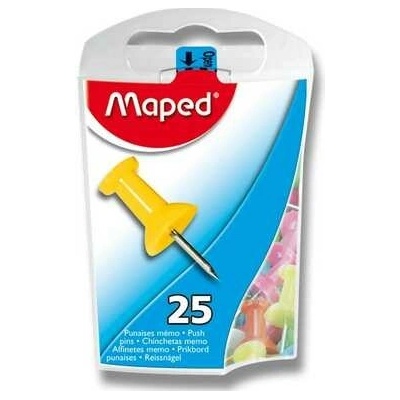 Upínáčky na korkové tabule v mixu barev. Průměr hlavičky: 10 mm Balení obsahuje 25 kusů.