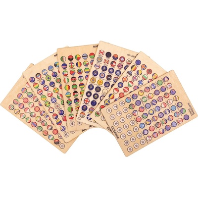 Vlajky států (zemí) světa dřevěné - připínáčky na dřevěnou mapu - 420ks (včetně symbolů) je ideálním doplňkem pro každého, kdo chce personalizovat svou mapy.