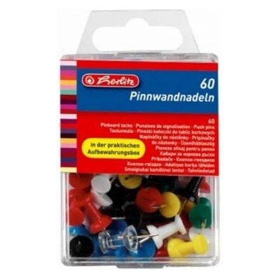 Různobarevné napínáčky do korkové nástěnky v plastové krabičce. Balení obsahuje 60 ks. Cena za bal.