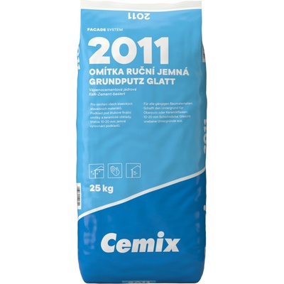 2011 OMÍTKA RUČNÍ JEMNÁ 082j Pro vytvoření rovného povrchu Jedna z nejjemnějších jádrových omítek Cemix - Vápenocementová jádrová omítka pro ruční omítání. - Pro omítání...