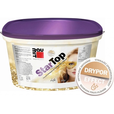 Baumit StarTop silikonové omítky. Vysoce odolná pastovitá tenkovrstvá omítka s inovovaným pojivem na silikonové bázi, funkčními plnivy pro zrychlené vysychání povrchu fasád za...