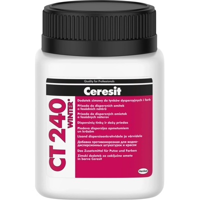 Přísada CT 240 je určena do tenkovrstvých disperzních omítek, základních nátěrů, akrylátových, silikonových fasádních nátěrů.. Přísada urychluje vytvrzování a schnutí omítek a...