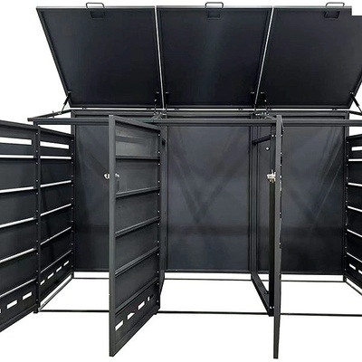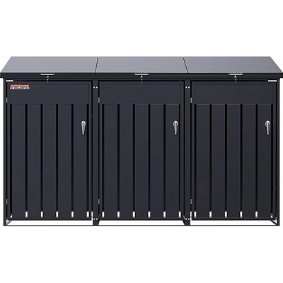 Přístřešek na popelnice D04GW3, na 3 popelnice, celokovový kryt, moderní, antracit/hnědý Funkce, vlastnosti a další informace Kovový box na odpadky Plech z uhlíkové oceli, s...