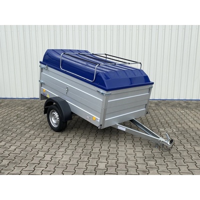Jednonápravový, nebrzděný valníkový přívěs s koly vedle ložné plochy. Přívěs má hliníkové bočnice o výšce 350 mm a podlahu z voděodolné překližky. Zadní čelo přívěsu je sklopné....