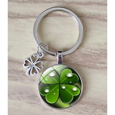 Klíčenka - přívěšek na klíče - zelený čtyřlístek pro štěstí.