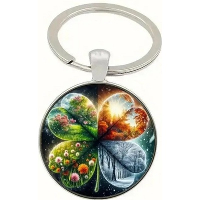 Klíčenka - přívěsek na klíče - čtyřlístek pro štěstí. Uvnitř čtyřlístku jsou 4 roční období - jaro, léto, podzim, zima. Klíčenka se čtyřlístkem je originální dárek pro každého,...