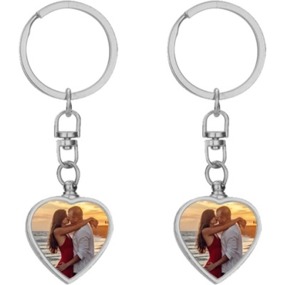 Přívěsek na klíče Kovová srdce s vlastní fotkou