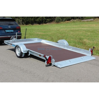 Malý sklopný přepravník malých aut, stavební techniky a motocyklů Specifikace: Ložná plocha 353x183cm. Celková hmotnost 1500kg (v TP možno snížit do 800kg), váha přívěsu...