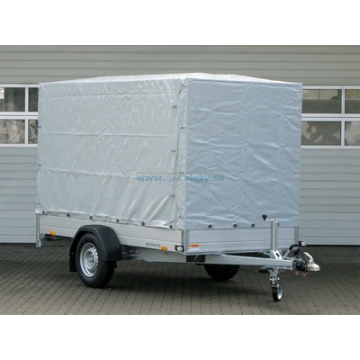 Odolný brzděný přívěs se svařovaným rámem s výztuhami pod podlahou a překližkovými bočnicemi. Ve standardní výbavě je zahrnuto: robustní svařovaný pozinkovaný rám pevná...
