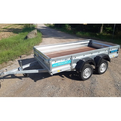 Standardní výbava: Celková hmotnost 750kg. Váha přívěsu 275kg. Nadstandardní ložná plocha 2630x1500x350. Celkové rozměry: 4037x1950x870mm Dvounápravové nebrzděné...