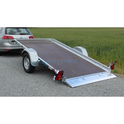 Nebrzděný přívěs s celkovou hmotností 750 kg. Ložná plocha 2270x1250x350 mm. Charakteristické je provedení s "V" ojí, plechové bočnice s Al-Zn úpravou, 13" kola, 7pólová...