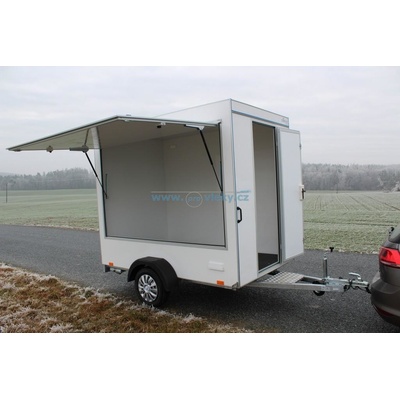 Lehký nebrzděný přívěs jako prodejní stánek s nízkou váhou. Standardní výbava: Rozměry ložné plochy: 2500x1500x2000mm Venkovní rozměry: 3950x1961x2545mm. Celková hmotnost...