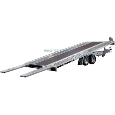 Sklopný autopřepravník na 10" kolech. Korba se překlápí vlastní vahou nakládaného automobilu. PROVEDENÍ PLATO. Nízký úhel nájezdu (6°) umožňuje snadné nakládání vozidel,...