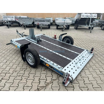 Sklopný autopřepravník na 10" kolech. Korba se překlápí vlastní vahou nakládaného automobilu. PROVEDENÍ PLATO. Nízký úhel nájezdu (6°) umožňuje snadné nakládání vozidel,...