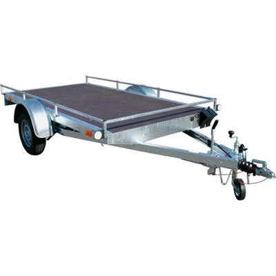 Nebrzděný přívěs s celkovou hmotností 750 kg. Ložná plocha 2650x1240x400 mm. Provedení s "V" ojí, plechové bočnice 400 mm s Al-Zn úpravou, 13" kola, 7pólová...