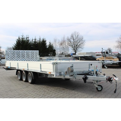 Odolný brzděný přívěs se svařovaným rámem s výztuhami pod podlahou a hliníkovými bočnicemi. Ve standardní výbavě je zahrnuto: robustní svařovaný pozinkovaný rám pevná V-oj...
