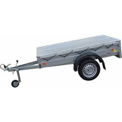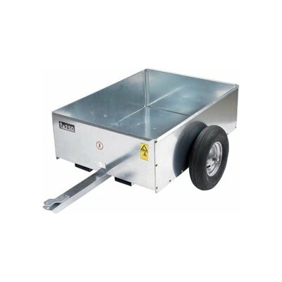 Přívěsný vozík z pozinkovaného plechu s výsuvnou zadní částí. Maximální nosnost je 200 kg, rozměry jsou 106,5x76,5x30,5 cm.