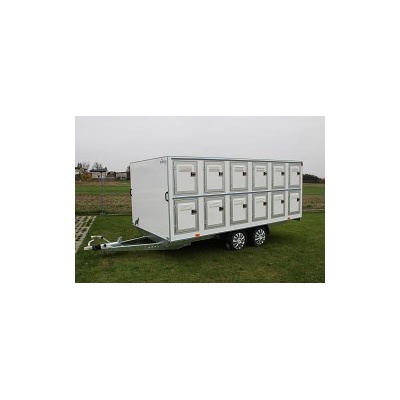 Skříňový přívěs TOMPLAN pro převoz až 24 psů! Ušito pro profesionály! Základní specifikace Celková hmotnost 2000kg Celkové rozměry 544 x 212 x 215cm 24 kotců s...