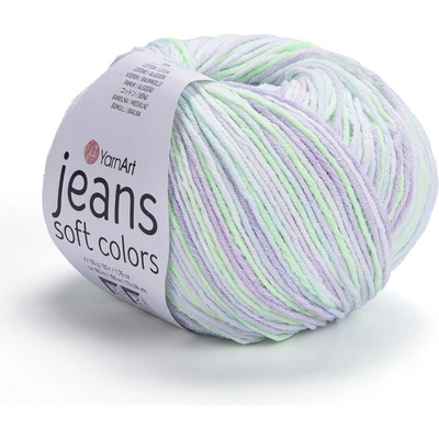 Směsová pletací / háčkovací příze (55% bavlna a 45% polyakryl) v melírované jemné zelenkavo-fialové barvě, Je vhodná na různé druhy pletení a háčkování a díky její všestrannosti...