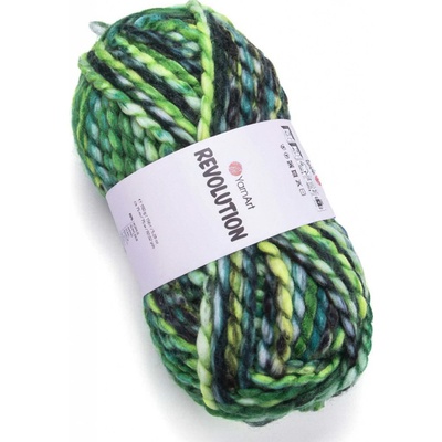 Směsová pletací příze v melírované zelené barvě. Velmi objemná příze, směs akrylu a vlny (20% vlna, 80% akryl) smotaná ze dvou nití jedna je pouze přadeno a druhá nit ji...