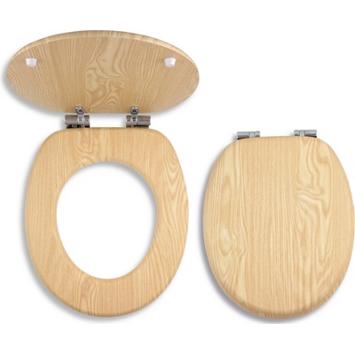 Sedátko dýhované dřevo Jasan, pomalu padající Dýhované dřevo Úchyty chromovaná mosaz. Rozměr 44.5±2 x 37.5 cm. Rozteč 110 - 180 mm. Váha sedátka 3,2 kg. 4 ks v kartonu