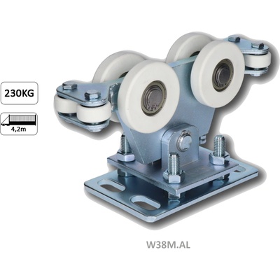 Vozík pro hliníkový C profil 95x100 mm samonosného systému pro posuvné brány, nylonová kolečka 8 ks, ložiska 6004ZZ, pozinkovaný