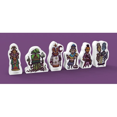 Figurky ke hře Osmero. Osmero je karetní hra s cestovatelským tématem, ve které hráči vybírají karty, které následně zahrávají před sebe. Karty obsahují různé postavy a lokace...
