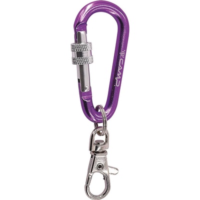 Reklamní hliníková „D“ karabinka se šroubovací pojistkou zámku v délce 6 cm a různých barvách. Nevhodné pro lezení. Instrukce: