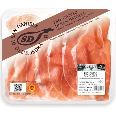 Prosciutto San Daniele DOP, bez lepku a konzervantů.Výjimečné, protože... Ne všechny šunky jsou vhodné pro tak dlouhé zrání: pouze šunky pečlivě vybrané pro svou hmotnost a strukturu vydrží ve sklepě dva roky. Výsledkem je produkt jedinečný svou sladkostí a chutí....