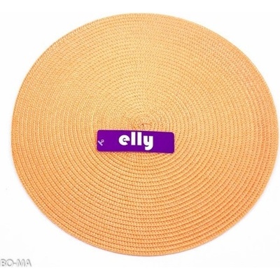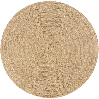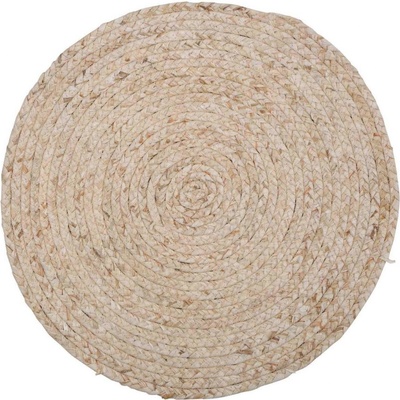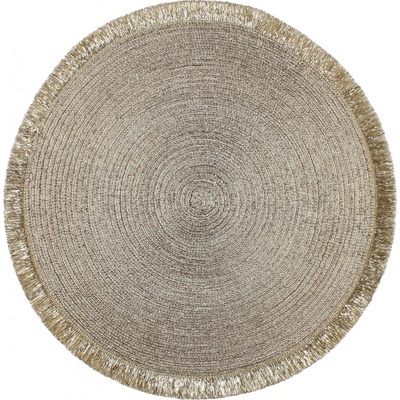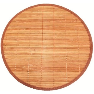 Kulaté prostírání vyrobené z bambusu podlepeného textilií, lemované látkou. Barva - světle hnědá. Rozměry: průměr 38 cm