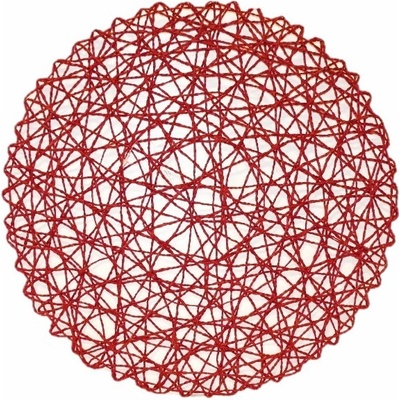 Kulaté prostírání, vyrobené z přírodního provázku. Barva tmavě červená. Rozměry: průměr 38 cm