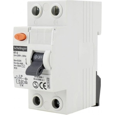 Prúdový chránič "AC" 2P 25A/30mA Schelinger Počet modulov: 2 Montáž: DIN lišta / TH 35mm Menovité napätie Un: 230/240V~ 50/60Hz Menovitý prúd In: 25A Rozdielový prúd:...