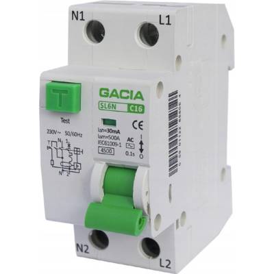 Proudový chránič; Ijmen: 16A; Iroz: 10mA; Póly: 1+N; 230/400VAC