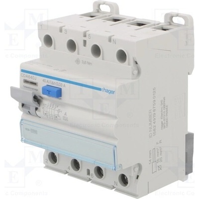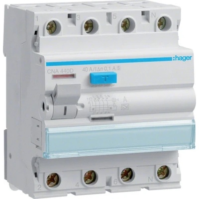 Proudový chránič 4 pól. 40A / 0,1 A, typ A, 6 kA, Hager CEA440D