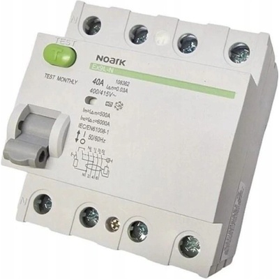 DIFERENCIÁLNÍ PROUDOVÝ SPÍNAČ 40A 4P 100ma TYP-A NOARK ELV Ex9L-N (TŘÍFÁZOVÉ) TECHNICKÉ ÚDAJE: Jmenovité napětí – 400 Velikost konstrukce (podle DIN 43880) – 4 Pulzující...