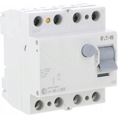 DIFERENCIÁLNÍ PROUDOVÝ SPÍNAČ 4P 40A 30mA TYP-AC EATON HNC-40-4-003 194694 Technické údaje: - Způsob montáže: DIN lišta - Šířka vyjádřená počtem modulů: 4 - Stupeň krytí...