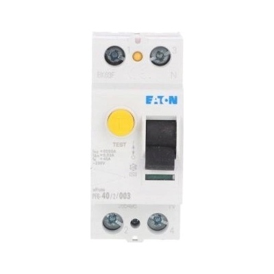 Proudový chránič 2P 40A 0,03A typ AC PF6-40/2/003 286496 eaton - Kód výrobce: 286496 - CN: 85362010 - PKWiU: 27.12.22.0 - Frekvence: 50 Hz - Hloubka zabudování [mm]: 69.5000 -...