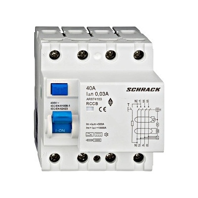 Proudový chránič; Ijmen: 40A; Iroz: 30mA; Nárazový proud: 250A