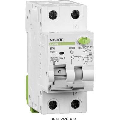 Noark 107622 Ex9BL-N 1P+N B16 30mA Proud. chránič s nadpr. ochr., Icn=6kA, 1+Npól, char. B, In=16A, IΔn=30mA, typ AC Kombinované chrániče Ex9BL-N jsou vhodné pro domovní i...