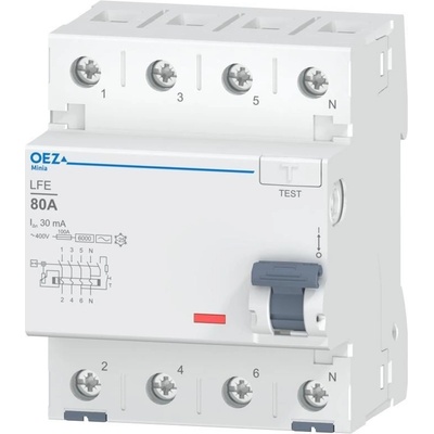 In 80 A, Ue AC 230/400 V, Idn 30 mA, 4pól, Inc 6 kA, typ AC Nový vylepšení aktivní katalog proudových chráničů LFE s kompletními informacemi naleznete ZDE.