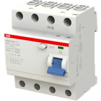 F204A-25/0,1; proudový chránič; čtyřpólový; jmenovitý proud: 25 A; citlivost: 100 mA; Typ A – pro střídavý a pulzující stejnosměrný reziduální proud (určeno pro 1f obvody s...