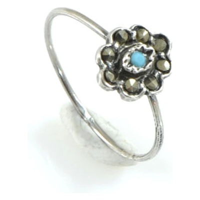 Prsten s tyrkysem z portugalského stříbra. Jemný prsten z patinovaného portugalského stříbra s ozdobou tvaru kytičky, která má uprostřed tyrkys. Okvětní lístky jsou tvořeny...