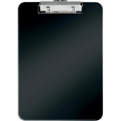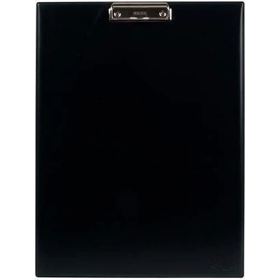 Černá podložka pro dokumenty, seznamy a tabulky na šířku. Kartonové desky potažené plastovou fólií. Robustní, plochý, zaoblený klip s rukojetí. Zatahovací zapínání.